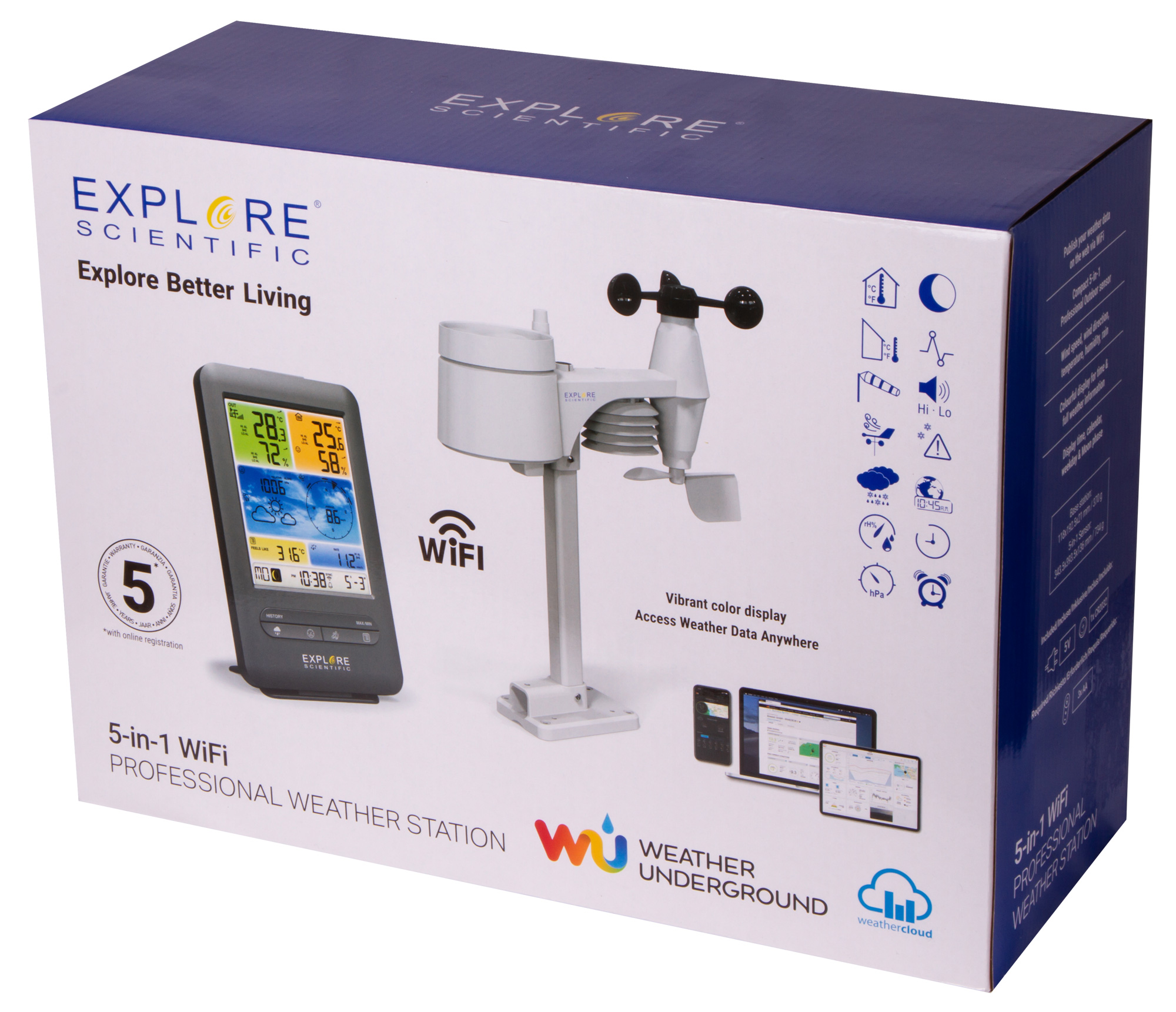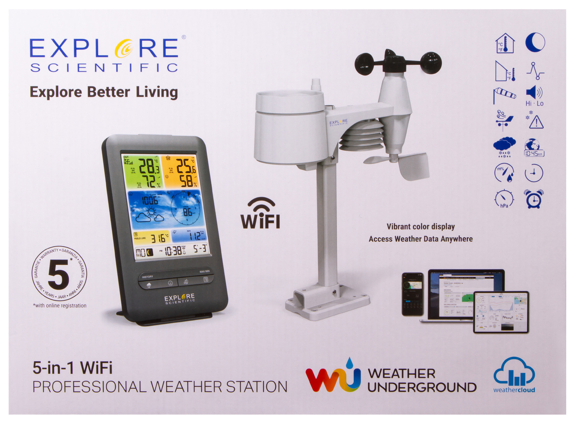 Добавить вопрос/отзыв о Метеостанция Explore Scientific «5 в 1» Wi-Fi с цветным дисплеем, черная