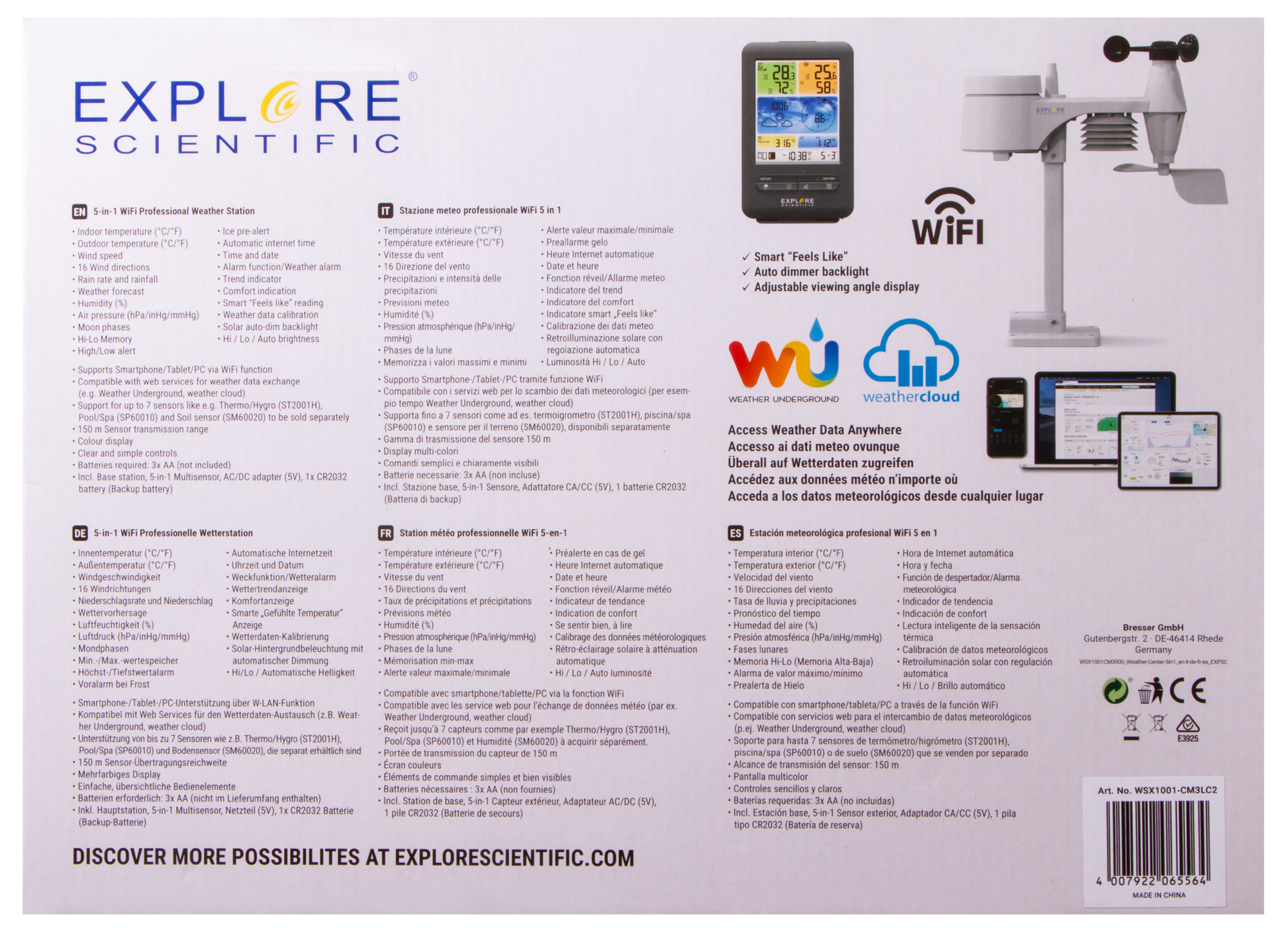 технология WLAN, совместимость с приложениями Weather Cloud, Weather WOW, Weather Underground, PWS Weather и аналогичными