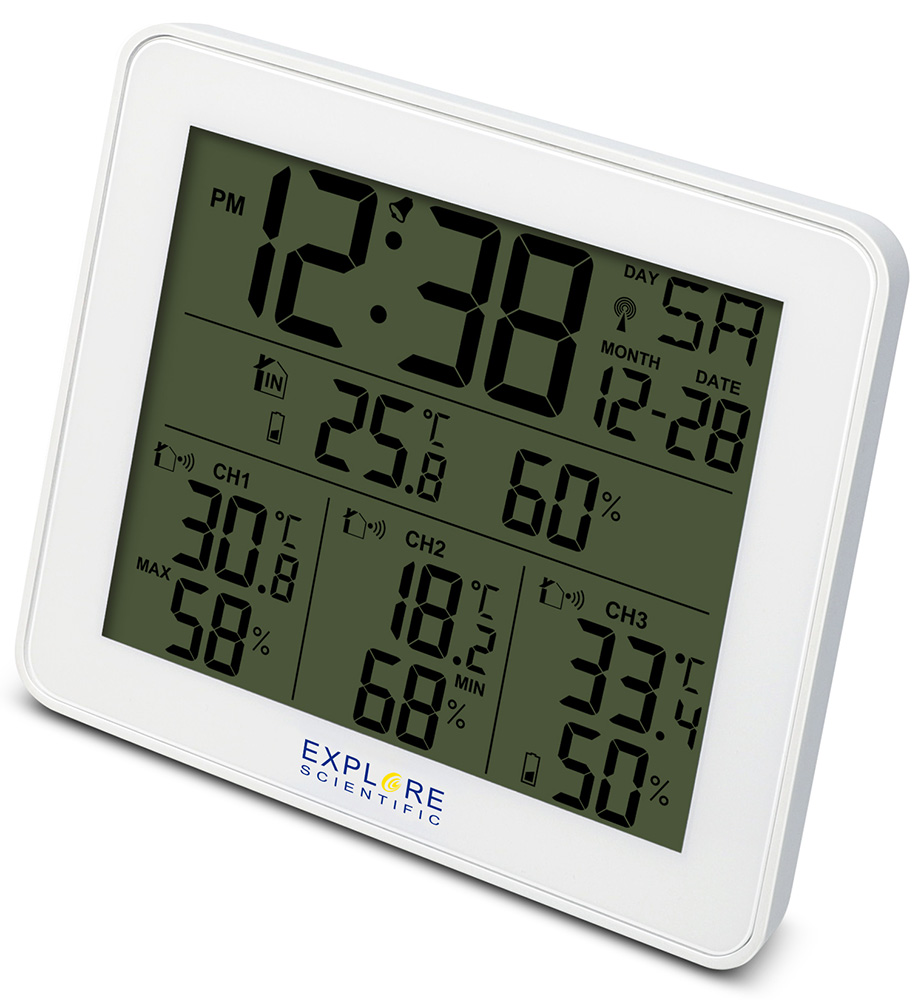 Метеостанция Explore Scientific – комнатный термогигрометр с тремя внешними датчиками, которые можно устанавливать на удалении до 80 метров от основного модуля. Она производит измерения сразу в четырех местах и в режиме реального времени выводит информацию на встроенный монохромный экран. Таким образом, она предоставляет самую актуальную и точную информацию о погоде и микроклимате. Метеостанция станет прекрасным подарком человеку, который заботится о своем здоровье и о самочувствии близких.