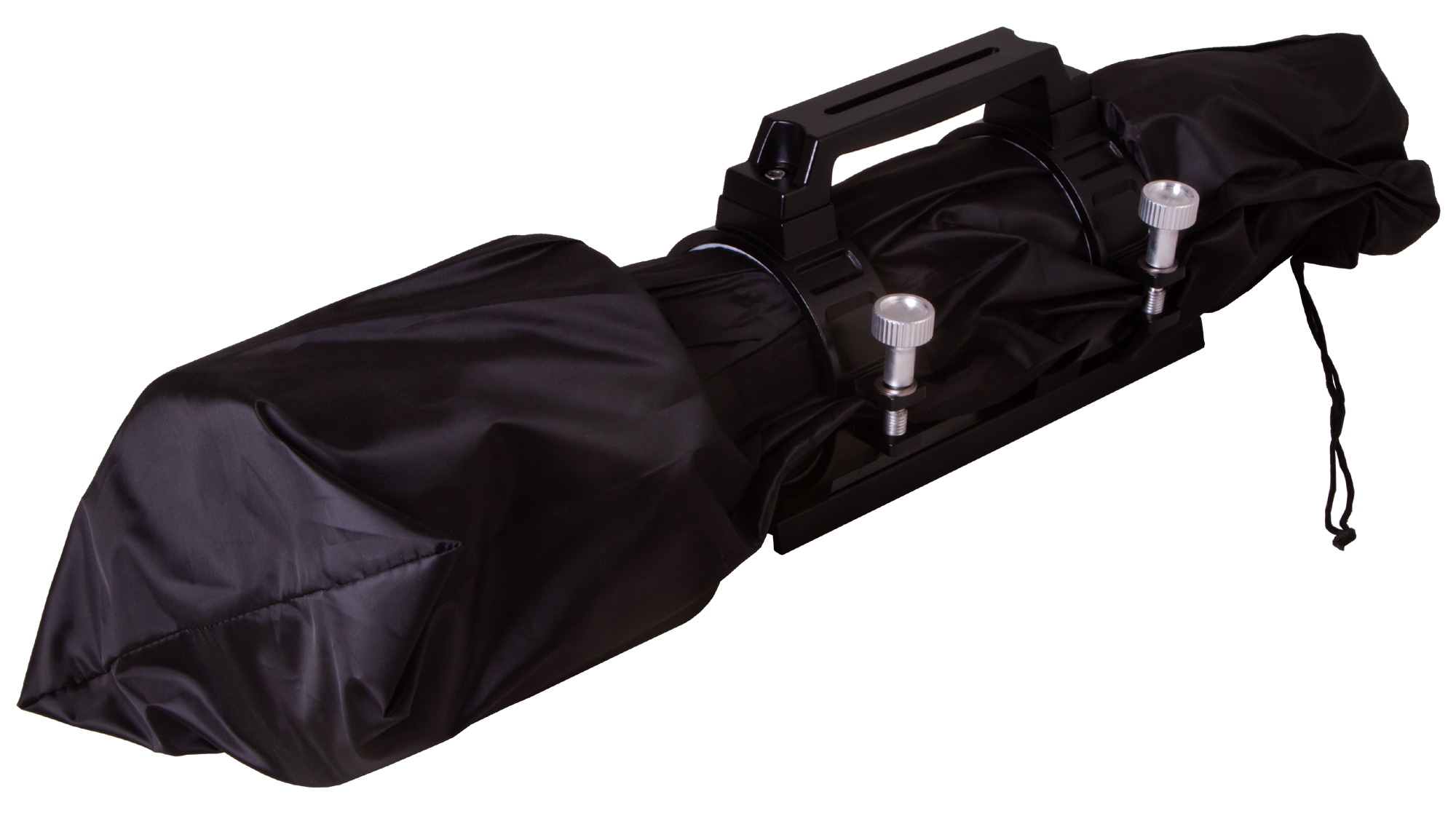 Для крепления к монтировке используется классический «ласточкин хвост». Сама труба крепится кольцами, которые объединены удобной ручкой для переноски. В верхней части ручки есть крепление для установки камеры. Также оптическая труба имеет съемный противоросник и поставляется с двумя защитными крышками – объектива и фокусера.
