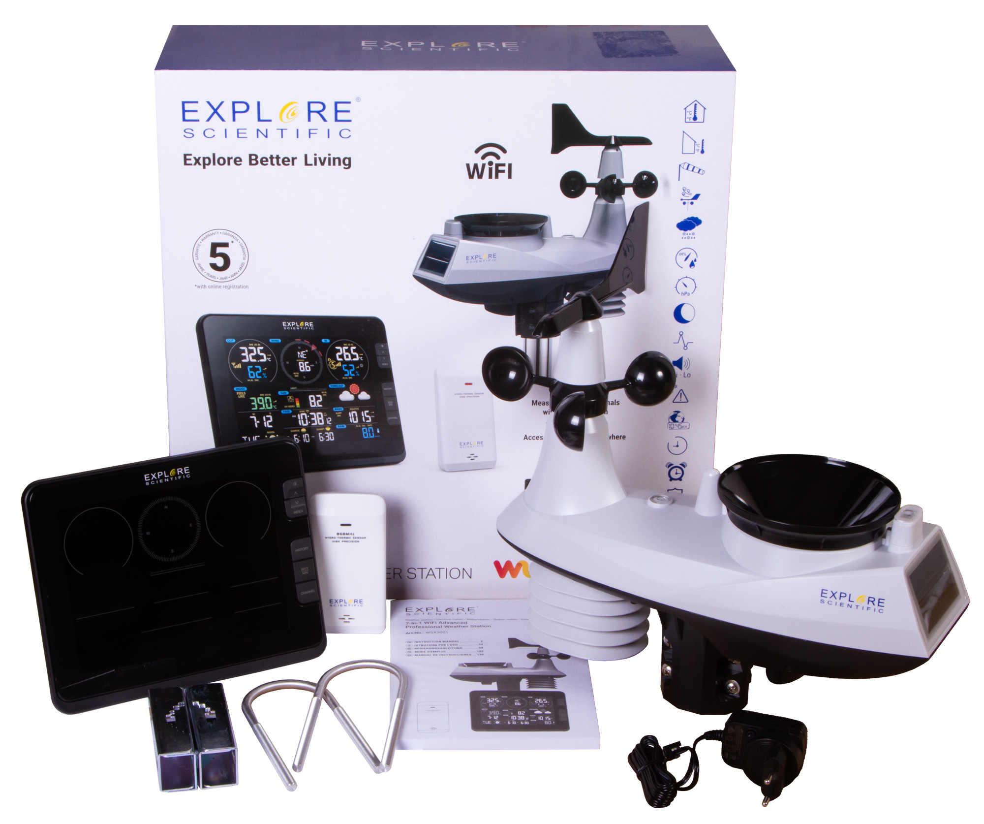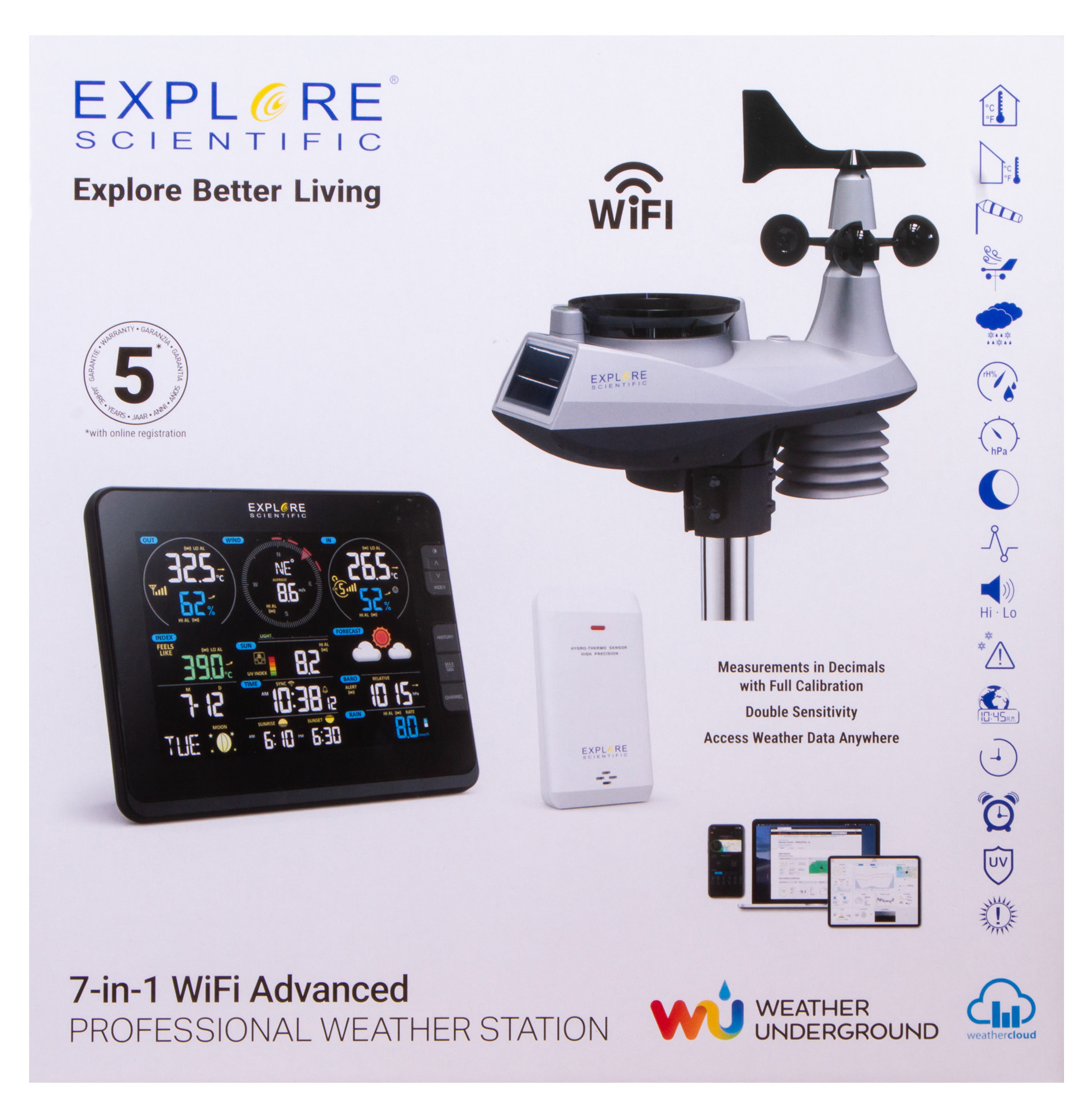 Добавить вопрос/отзыв о Метеостанция Explore Scientific «7 в 1» Wi-Fi, профессиональная, черная: