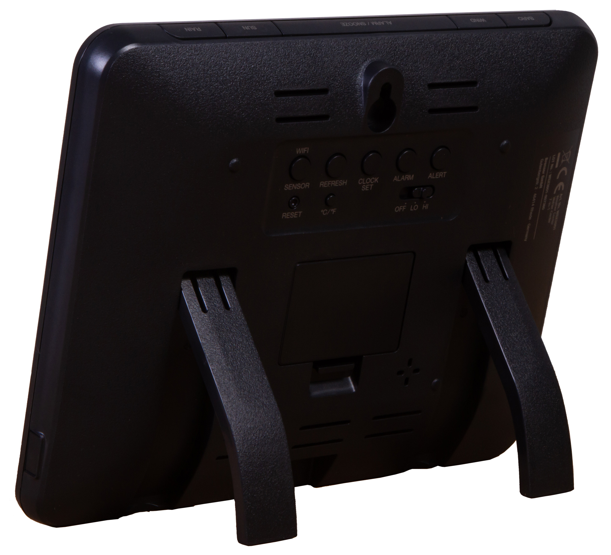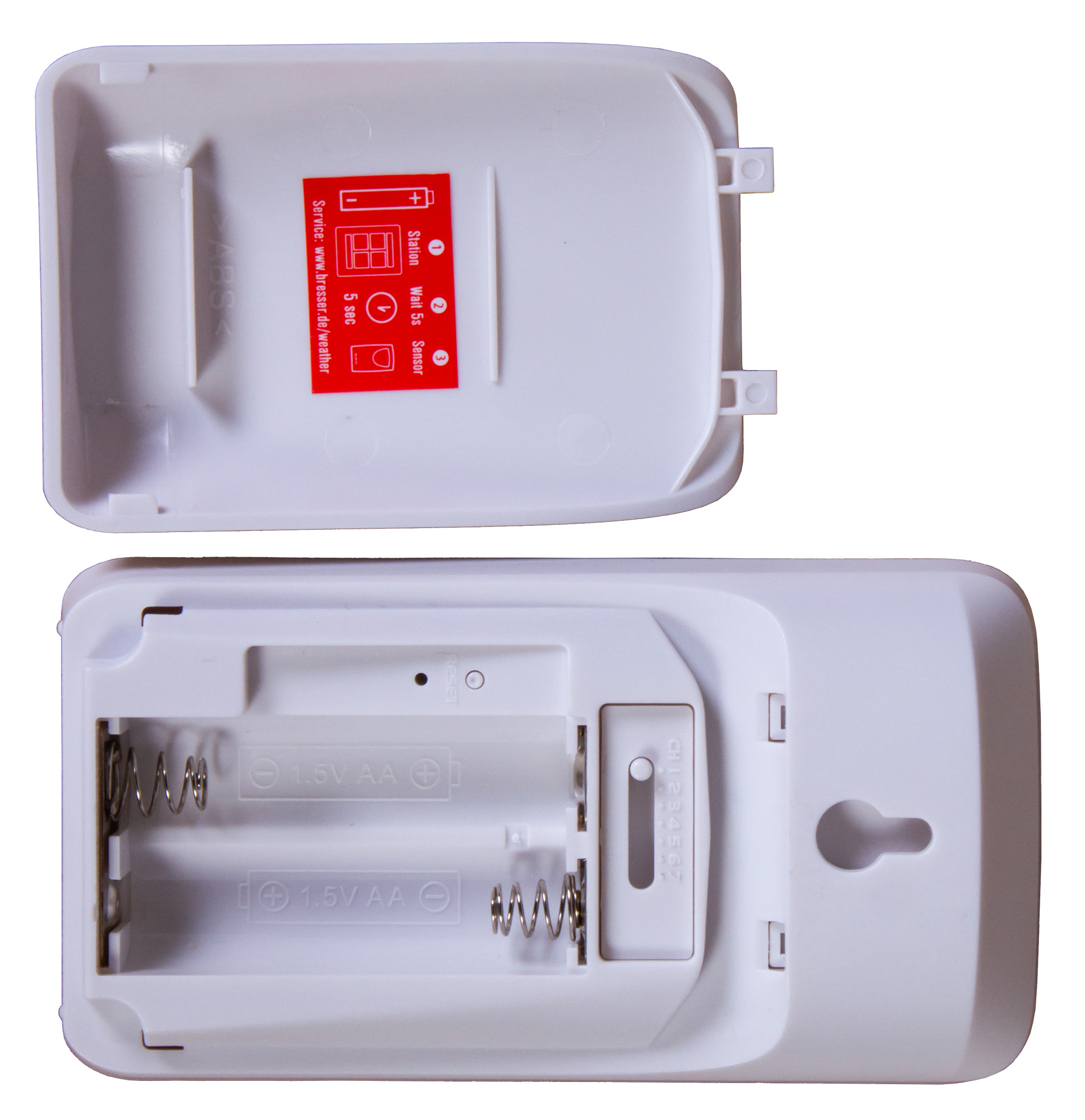 Основной блок подключается к сети переменного тока, также в него можно установить батарейку для резервного питания. Для работы наружных датчиков требуются батарейки (приобретаются отдельно).
