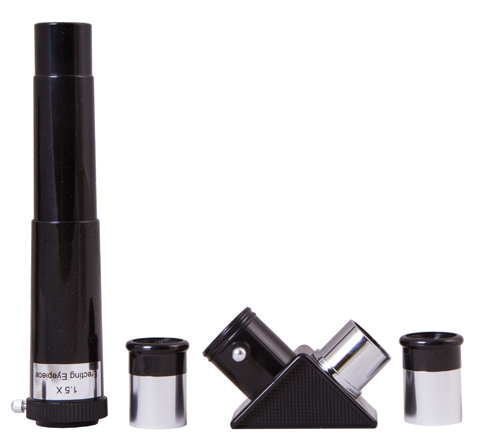Среди прочих аксессуаров в комплект поставки входят два окуляра. Благодаря этому астрономические и наземные объекты можно рассматривать на увеличении до 100 крат.
